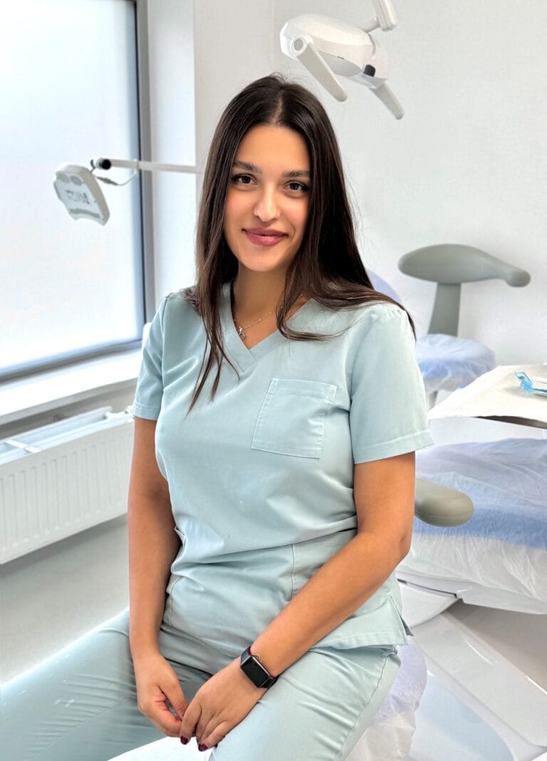 Jestem dyplomowaną asystentką stomatologiczną, ukończyłam szkołę w 2023 roku w Warszawie i posiadam wykształcenie medyczne zdobyte na Białorusi. W roli asystentki stomatologicznej zajmuję się przygotowaniem narzędzi, leków i materiałów niezbędnych do przeprowadzenia badań i zabiegów oraz dbam o aseptykę i antyseptykę w gabinecie.